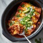 This Slow Cooker Chicken Enchilada Casserole is a comforting, flavorful meal that’s perfect for busy days. Tender chicken simmers in a rich, spicy sauce with beans and cheese, making it ideal for a hands-off dinner. Serve it over rice for a complete, satisfying dish.