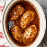 - Serve: Serve the chicken breasts whole topped with the thickened sauce, or shred the chicken directly in the crock pot and stir it back into the sauce for pulled chicken style serving.