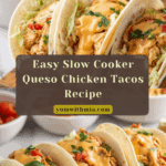 These Slow Cooker Queso Chicken Tacos are a flavorful and easy-to-make meal perfect for busy weeknights. Tender chicken breasts are slow-cooked with taco seasoning, tomatoes, and green chiles, then mixed with creamy salsa con queso for a cheesy, spicy filling. Served in street taco-sized flour tortillas and garnished with fresh toppings, these tacos offer a delicious Tex-Mex experience with minimal effort.