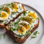 Smashed Egg Toasts with Herby Lemon Yogurt is a fresh and satisfying breakfast or brunch option. Soft-boiled eggs are combined with a bright, herby yogurt spread on crispy toasted bread, creating a delicious balance of creamy and crunchy textures.