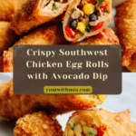 Keywords: Southwest egg rolls, crispy chicken egg rolls, avocado ranch dip, party appetizers, fried egg rolls, rotisserie chicken recipe