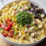 Southwestern Pasta Salad is a colorful and flavorful dish that combines tender rotini pasta with fresh vegetables, black beans, corn, and grilled chicken. Tossed in a zesty chipotle ranch dressing, it’s perfect for a quick lunch or a crowd-pleasing side at your next gathering.