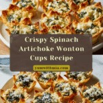 These Spinach-Artichoke Dip Wonton Cups are a delicious and easy-to-make appetizer perfect for parties or gatherings. Crispy wonton wrappers baked to golden perfection are filled with a creamy mixture of spinach, artichoke hearts, cheeses, and garlic, creating a bite-sized treat that’s both flavorful and satisfying.