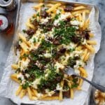 - Assemble Frites: Arrange the cooked fries on a plate or small sheet pan. Top with the caramelized onions, bite-sized pieces of steak, and then scatter slices or shredded provolone cheese evenly over the top.