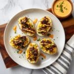 - Serve: Remove from the oven, top each potato skin with a dollop of chipotle sour cream, garnish with extra chopped chives, and serve immediately.