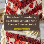 Strawberry Earthquake Cake is a decadent, layered dessert featuring a moist strawberry cake base studded with fresh strawberries, coconut, and nuts, topped with a luscious cream cheese swirl and white chocolate chips. This easy-to-make cake offers a delightful mix of fruity, sweet, and creamy flavors, perfect for gatherings or special occasions.