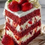 Strawberry Earthquake Cake is a delightful layered dessert that combines the sweetness of fresh strawberries, coconut, and white chocolate with a creamy swirl of rich cream cheese. Its gooey center and fruity flavors make it an irresistible treat perfect for any occasion.