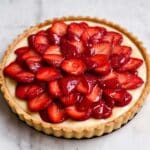 Tarte aux Fraises is a classic French strawberry tart featuring a crisp buttery crust filled with smooth vanilla pastry cream and topped with fresh, vibrant strawberries. This elegant dessert is perfect for spring and summer gatherings or any time you want to impress with a light, fruity treat.