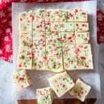 Keywords: sugar cookie fudge, white chocolate fudge, festive fudge, holiday dessert, easy fudge recipe, no bake fudge