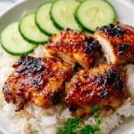 - Serve: Transfer the glazed chicken to a serving plate. Garnish with chopped cilantro, sliced green onions, sesame seeds, and lime wedges. Serve immediately alongside rice, noodles, or stir-fried vegetables for a complete meal.