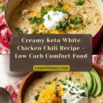This tasty keto white chicken chili is a creamy, comforting dish perfect for chilly days. Packed with tender shredded chicken and flavorful spices, it offers rich, satisfying warmth without the carbs. Easy to make and delicious to eat, it’s a keto-friendly twist on a classic favorite.