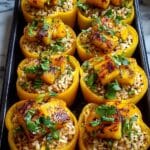 Teriyaki Pineapple Chicken and Rice Stuffed Peppers combine tender shredded chicken, sweet pineapple, and savory teriyaki sauce with fluffy rice, all baked inside colorful bell peppers. This sweet and savory meal is perfect for a flavorful weeknight dinner, offering a delightful blend of textures and tastes with an optional cheesy topping.