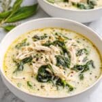 Yes, you can prepare this soup on the stovetop. Combine all ingredients except the spinach and cook over medium heat for about 30-40 minutes until the chicken is cooked through and tender. Shred the chicken and add the greens at the end.