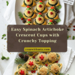 These Tree-Topped Spinach Artichoke Crescent Cups are a delightful twist on a classic dip, transformed into bite-sized appetizers. Perfect for parties or a cozy snack, they combine creamy filling with a crispy, golden crescent shell and a festive panko topping that looks like tiny trees.