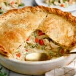 - Rest and serve. Remove the pot pie from the oven and let it sit for 10 minutes before slicing. This resting period helps the filling set for easier serving.