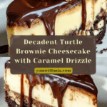 This Turtle Brownie Cheesecake is a rich and indulgent dessert that combines a fudgy brownie base with a creamy caramel-infused cheesecake topping. Finished with a luscious caramel drizzle and optional whipped cream and chocolate shavings, it’s perfect for chocolate and caramel lovers seeking a decadent treat for special occasions or dessert indulgence.