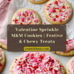 Delight in these festive Valentine Sprinkle M&M Cookies, bursting with colorful red, white, and pink M&Ms, chocolate chips, and topped with charming Valentine sprinkles. These soft, chewy cookies are perfect for celebrating the holiday or any special occasion, combining a buttery dough with a sweet crunch that everyone will love.