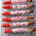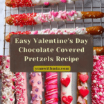 Chocolate covered pretzels are a delightful mix of sweet and salty that make a perfect treat for Valentine’s Day. These colorful, festive pretzel rods coated in candy melts and decorated with sprinkles are easy to make and fun to share with loved ones.