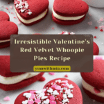 These Valentine’s Red Velvet Whoopie Pies are adorable, festive treats perfect for sharing with someone special. With soft, cocoa-infused red cookies and a creamy cream cheese filling, they’re a delightful twist on a classic dessert. Easy to make and irresistibly tasty, they’re sure to be a hit at any celebration.