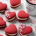 These Valentine’s Red Velvet Whoopie Pies are adorable, festive treats perfect for sharing with someone special. With soft, cocoa-infused red cookies and a creamy cream cheese filling, they’re a delightful twist on a classic dessert. Easy to make and irresistibly tasty, they’re sure to be a hit at any celebration.