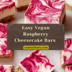 These Vegan Raspberry Cheesecake Bars are a creamy, dairy-free dessert perfect for a refreshing treat. Featuring a walnut and oat crust with a rich cashew coconut filling, topped with a luscious raspberry swirl, this no-bake cheesecake combines natural sweetness with vibrant fruit. Ideal for vegan diets, these bars are easy to make and set in the freezer for a satisfying, guilt-free indulgence.
