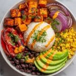 This vibrant Vegan Sweet Potato Burrito Bowl is a wholesome, nutrient-packed meal featuring roasted sweet potatoes, black beans, rice, fresh veggies, and zesty lime. It’s a delicious and easy-to-make dish perfect for a healthy lunch or dinner that caters to vegan and gluten-free diets.