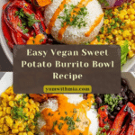 Keywords: vegan sweet potato bowl, burrito bowl recipe, roasted sweet potatoes, black beans, healthy vegan lunch, gluten-free vegan meal