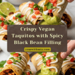 Keywords: vegan taquitos, plant-based Mexican, baked taquitos, tofu taquitos, black beans taquitos, healthy appetizer, vegan Mexican recipe