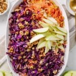 This vibrant vinegar coleslaw is a refreshing twist on the classic, made without any mayo. Featuring crisp cabbage, sweet apple, and crunchy walnuts, it’s dressed in a tangy and lightly sweet vinaigrette that brightens up any meal.