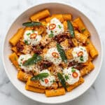 This Sweet Potato Goat Cheese Sage pasta is a delightful blend of creamy, savory, and aromatic flavors. Roasted sweet potatoes and crispy sage leaves elevate a simple short pasta into a comforting, unique dish perfect for any season.