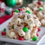 - Decorate: Top each candy portion with holiday M&Ms and optionally garnish with holiday sprinkles for a festive look.