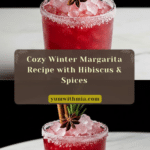 Keywords: Winter Margarita, hibiscus syrup, hibiscus margarita, festive drinks, winter cocktails, homemade syrup, cinnamon, ginger, citrus, Mexican beverages