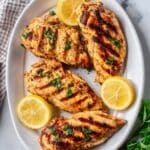 Keywords: Yogurt marinated chicken, pan fried chicken, air fryer chicken, baked chicken recipe, Mediterranean chicken, garlic lemon chicken