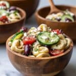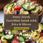 This Zesty Greek Tortellini Salad is a vibrant and refreshing dish perfect for a light lunch or a flavorful side. Combining tender cheese tortellini with crisp cucumber, juicy grape tomatoes, tangy kalamata olives, red onion, and crumbly feta, all tossed in a zesty red wine vinaigrette with garlic and oregano, this salad delivers a satisfying Mediterranean twist that’s easy to prepare and perfect for warm-weather gatherings or meal prep.